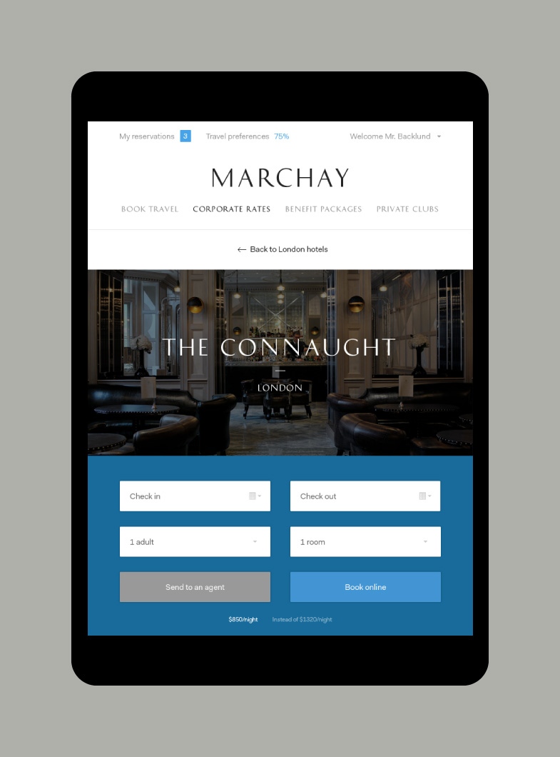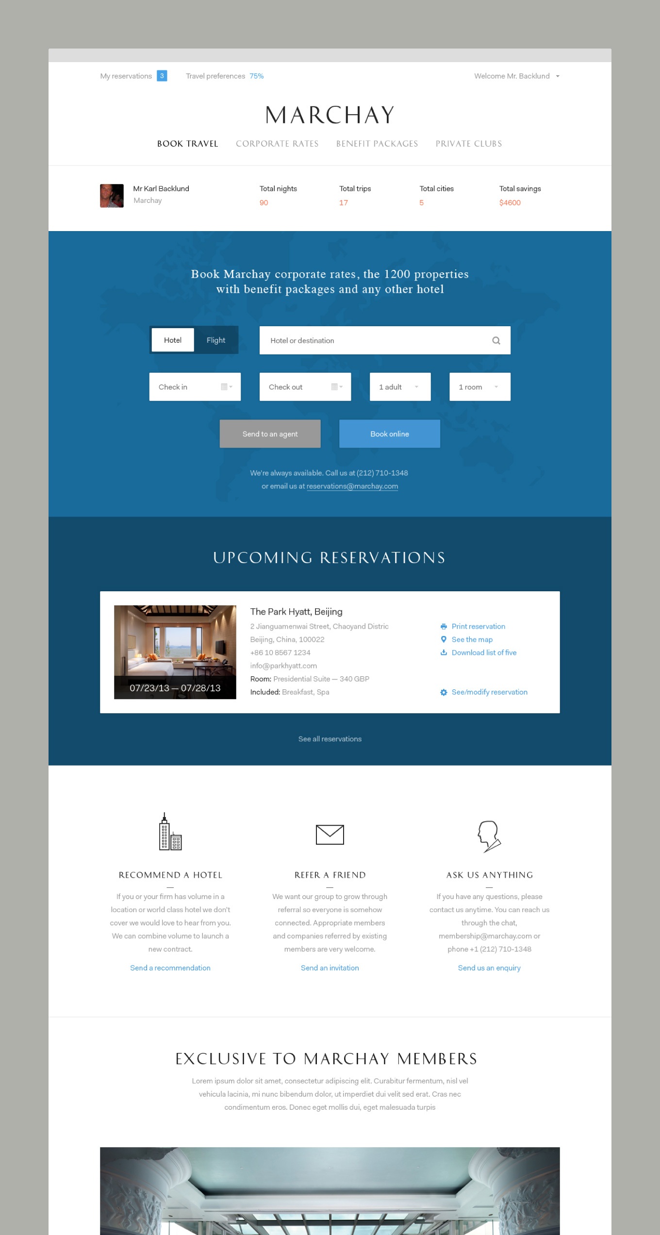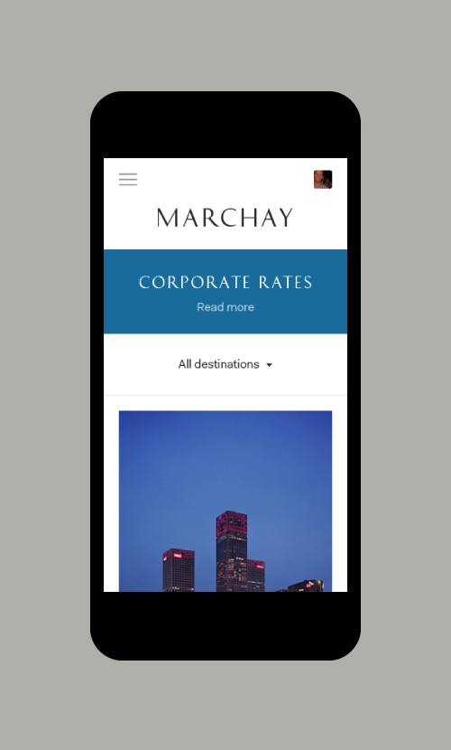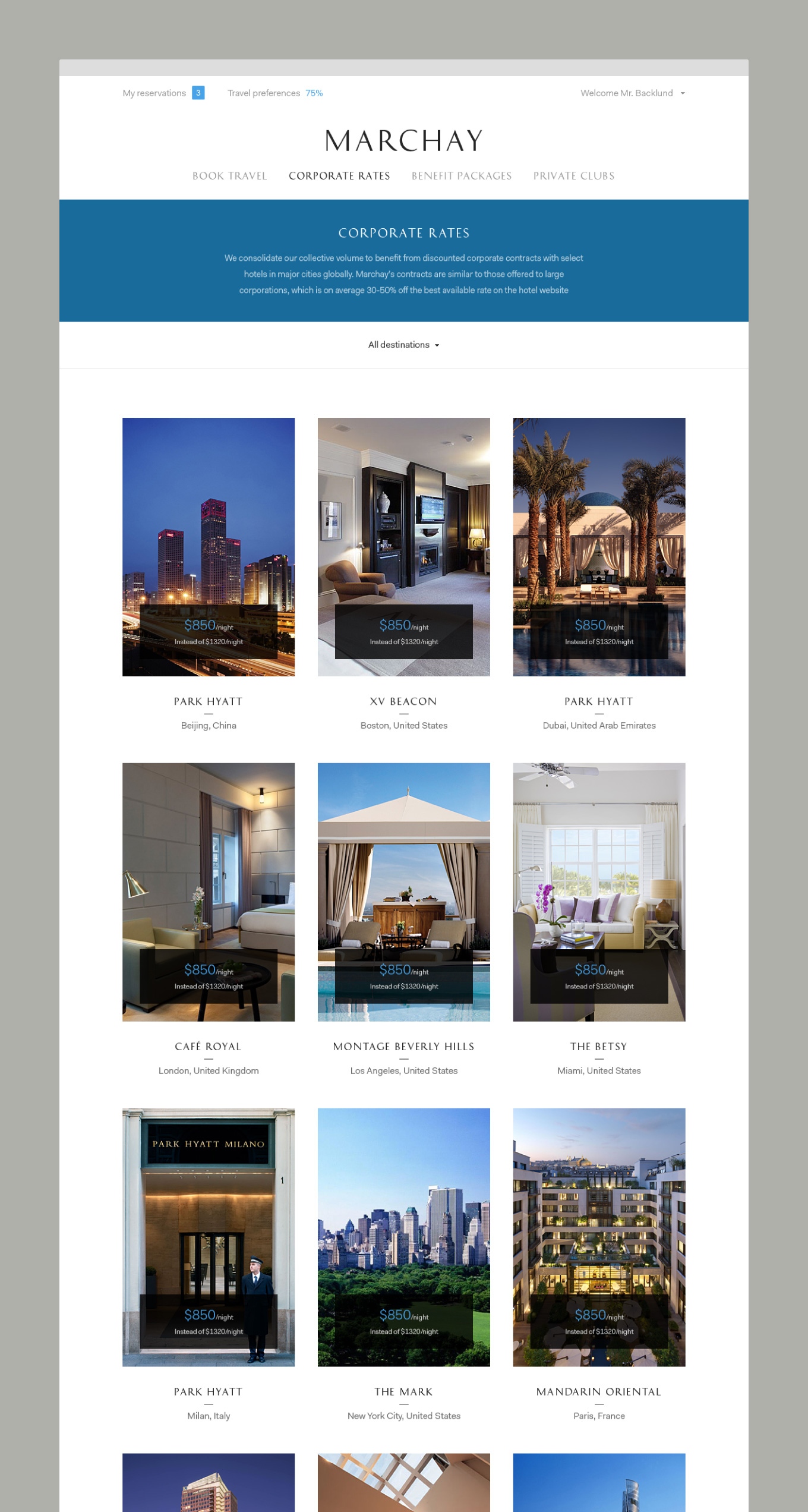I designed the entire responsive website for Marchay, a hotel and flight booking platform intended to high end business travellers.
