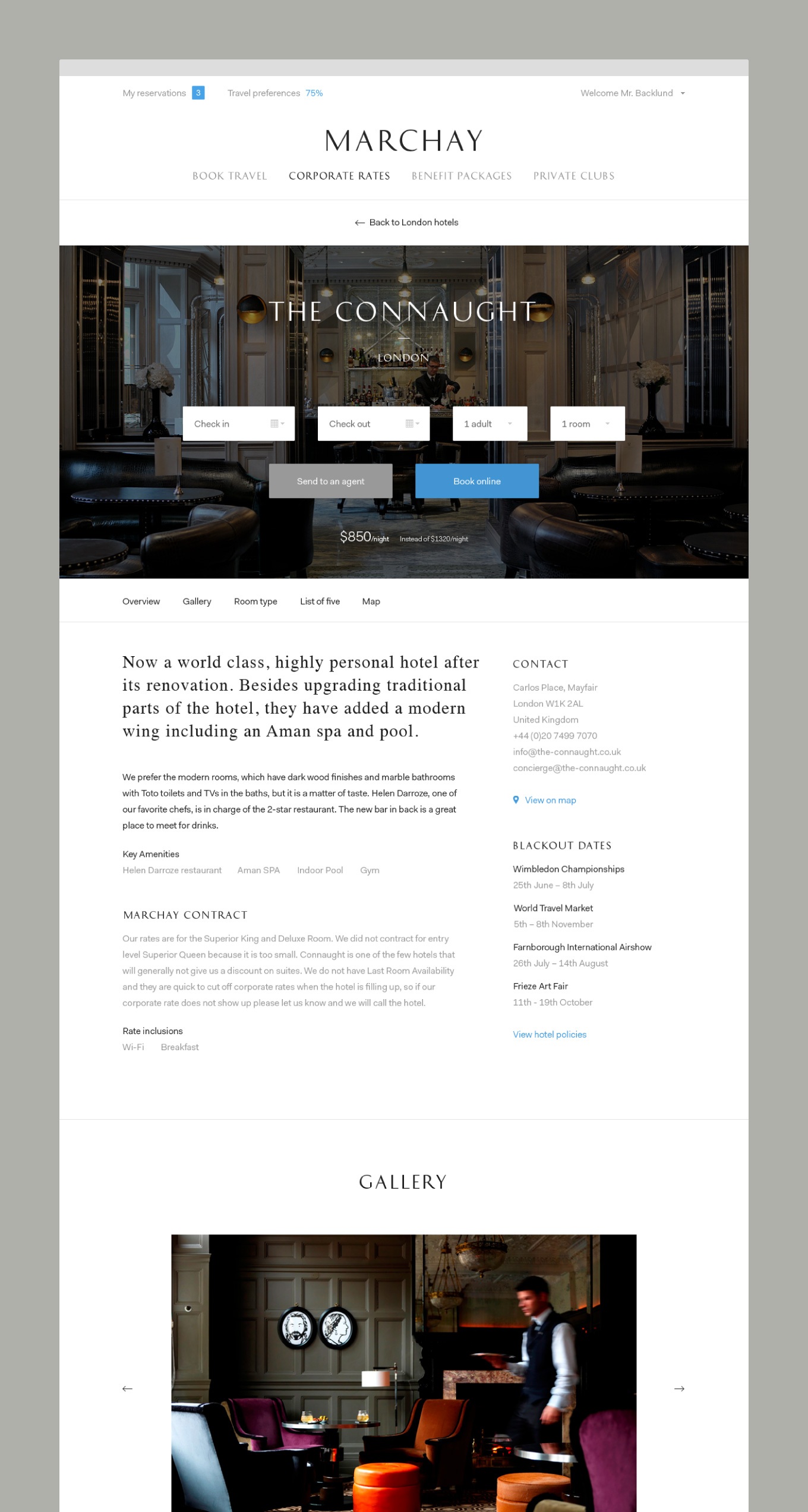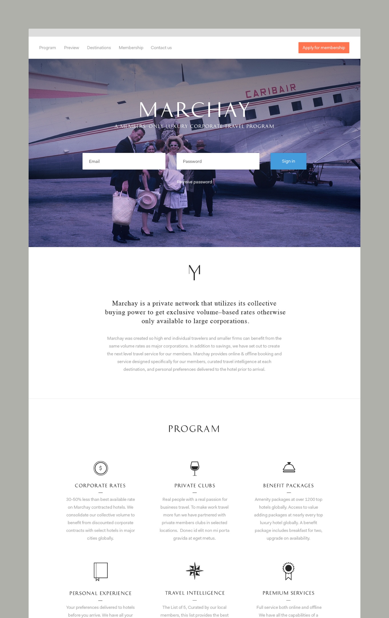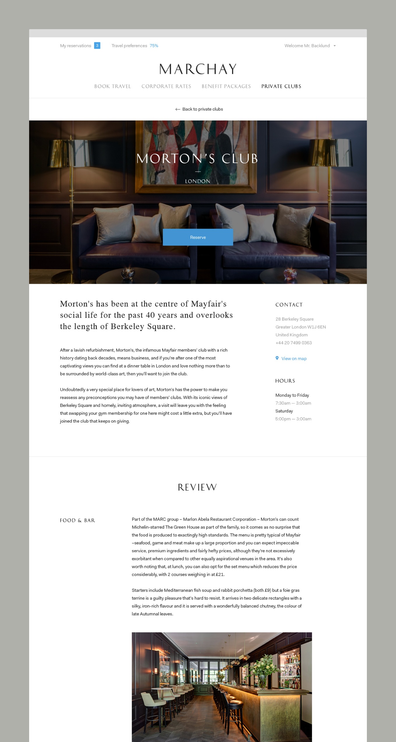 I designed the entire responsive website for Marchay, a hotel and flight booking platform intended to high end business travellers.