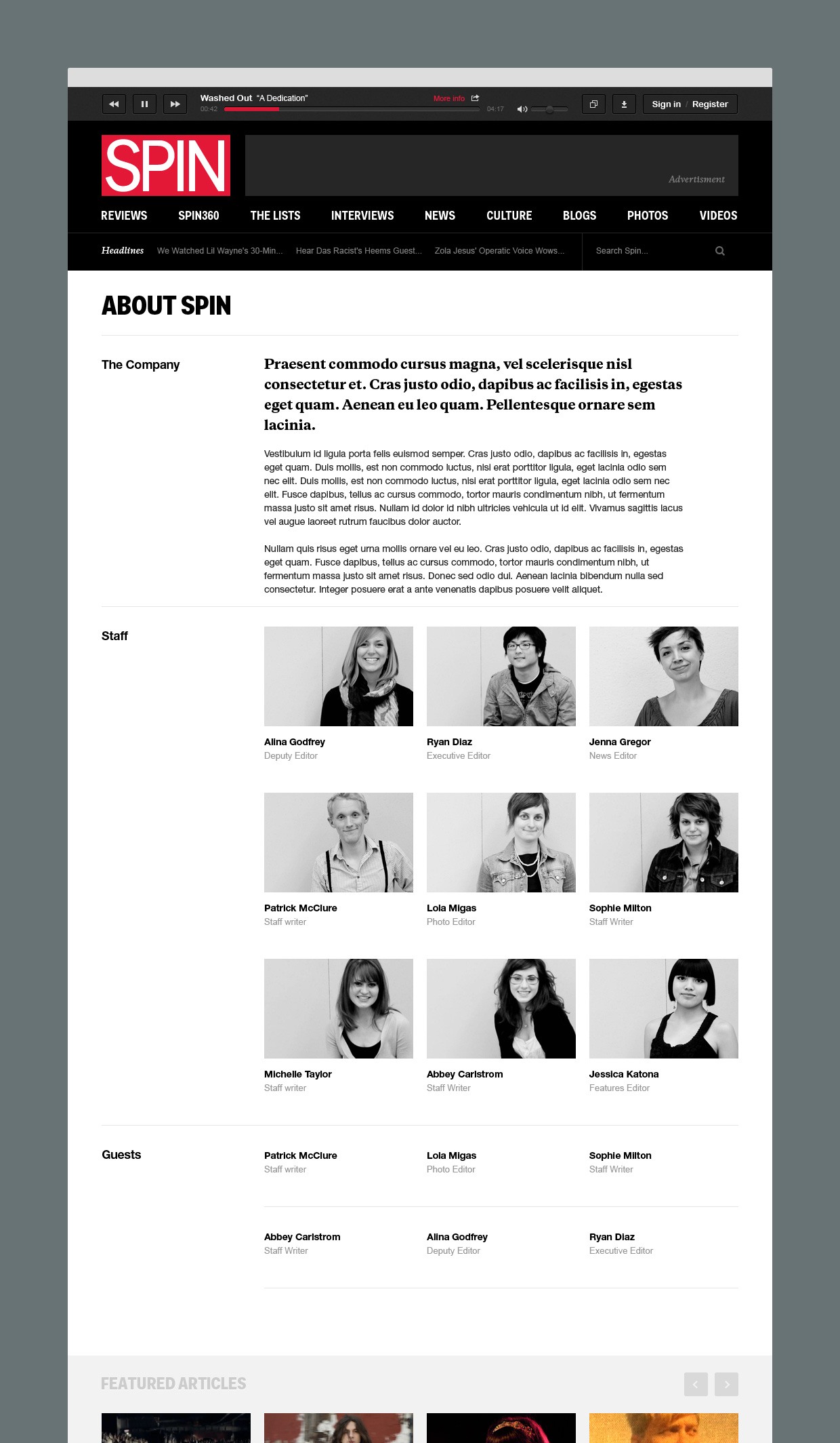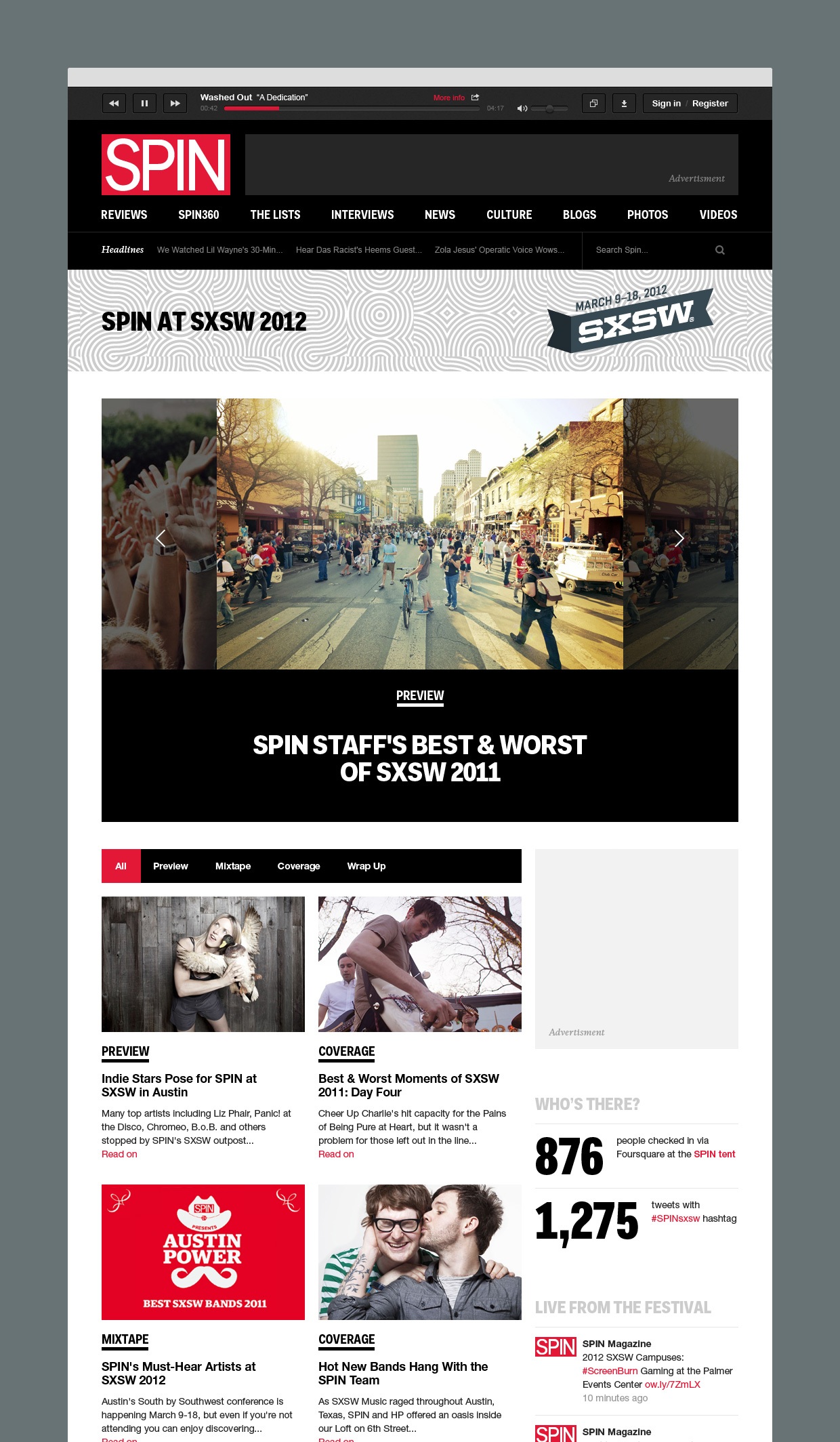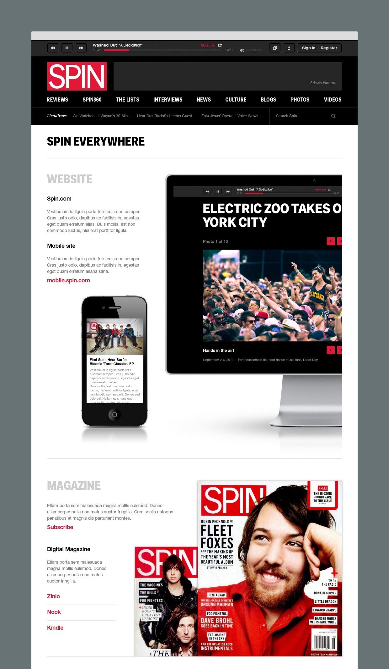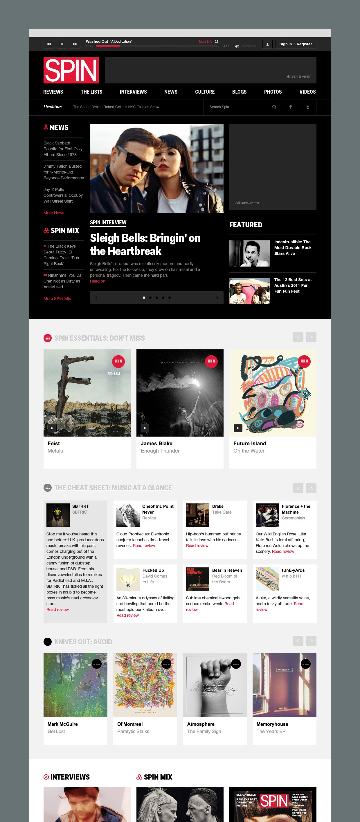 I seconded Art Director David Lamothe in the redesign of the Spin music magazine website.