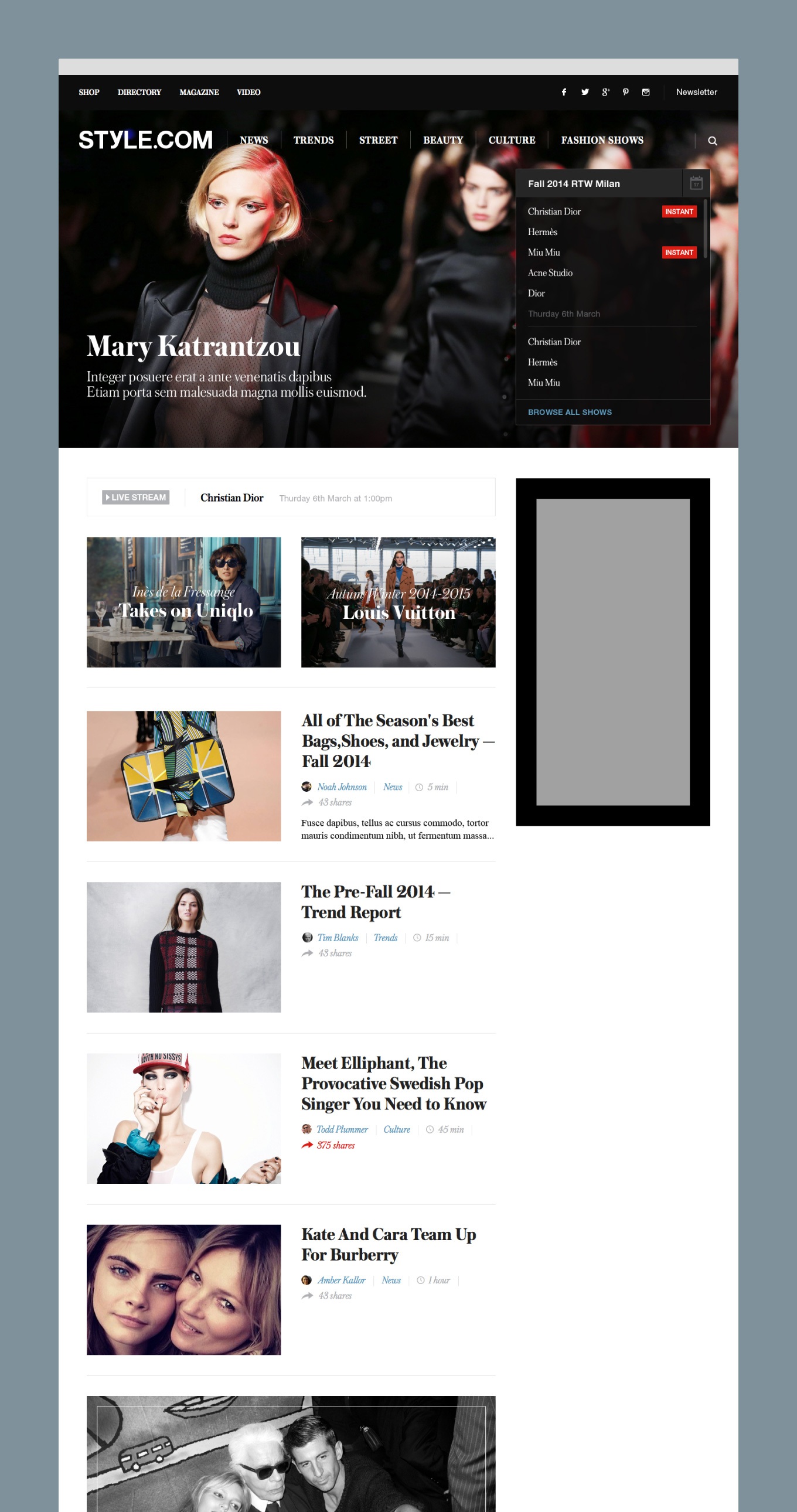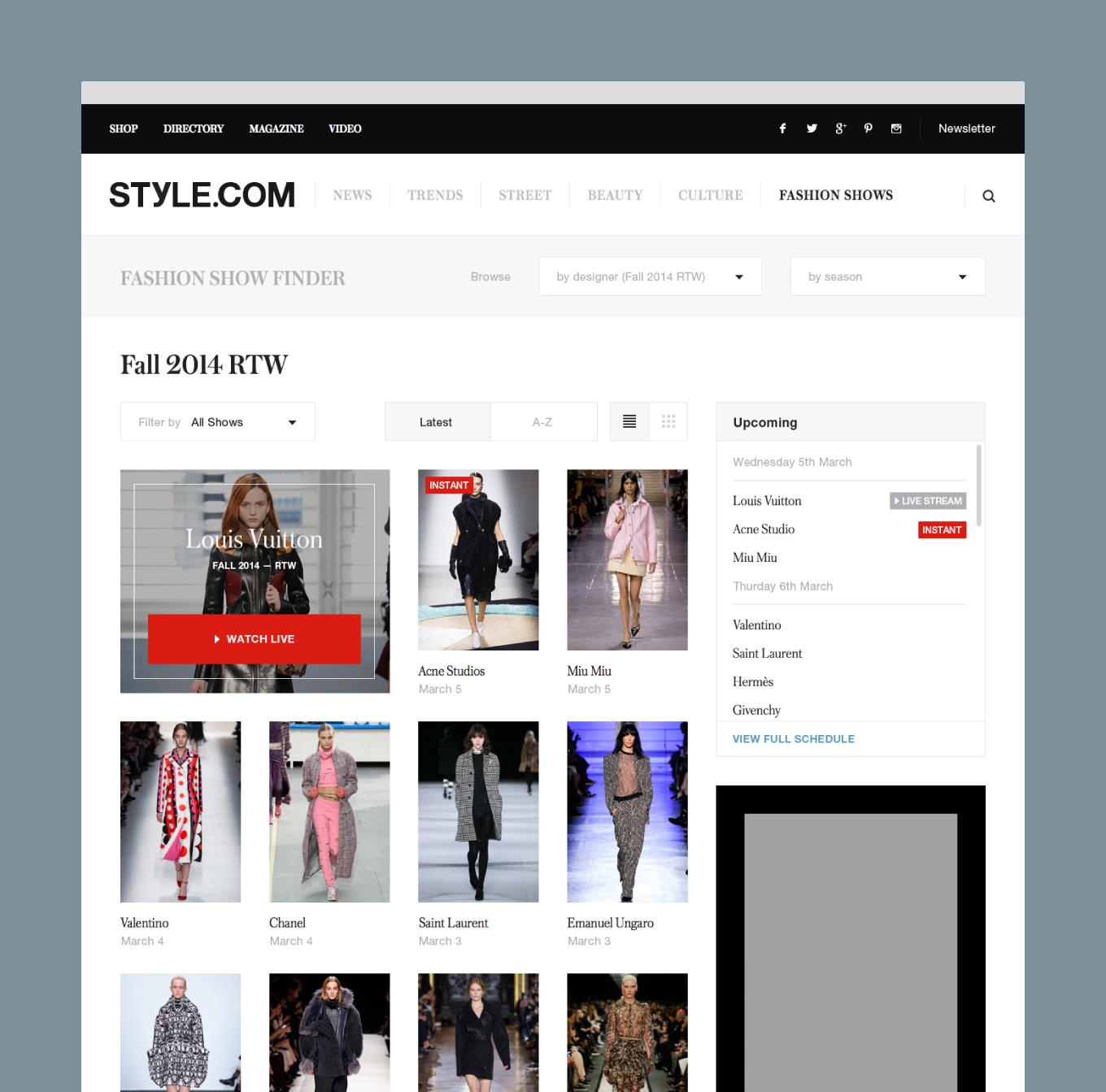 Vogue launched Style.com that became the number one destination for anything fashion related, attracting more than 2,5 million average monthly unique visitors. I was responsible of the entire redesign and growth of the website into a responsive platform, touching upon media, ecommerce and social aspects.